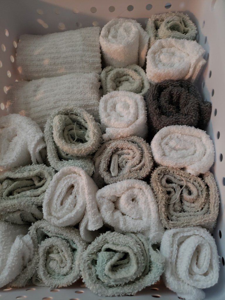 The cleaning cloths I have are my favorite kind to use. Just basic terry wash cloths from Walmart. Nothing special unless you’re me lol